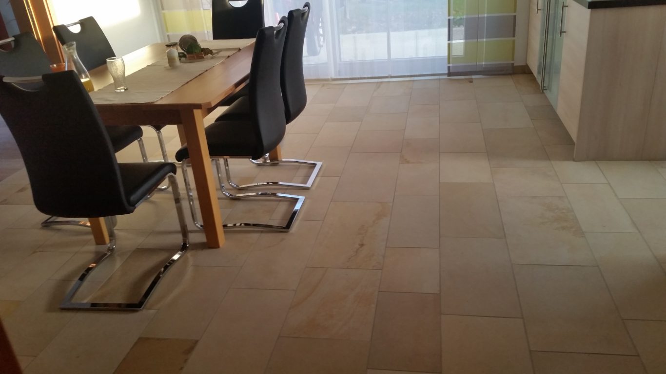 Durch das kalibrieren wird das Verlegen der Solnhofener Natursteine einfacher für den Fliesenleger.